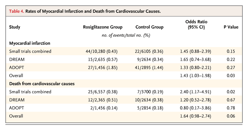 Effect of Rosiglitazone on the Risk of Myocardial Infarction and Death from Cardiovascular Causes