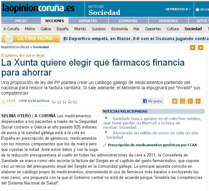 Pero hay más sorpresas, en Galicia se apuntan, con algo de originalidad eso sí, a la epidemia de tentación totalitaria farmacéutica que recorre nuestros lares y cuya principal consecuencia es el recorte de libertad de prescripción de los médicos de atención primaria.