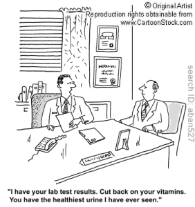 «I have your lab test results. Cut back on your vitamins. You have the healthiest urine I have ever seen.»