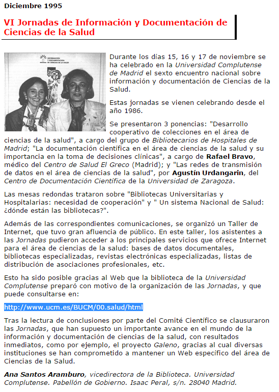 Ponencia en las VI Jornadas de Documentación e Información en Ciencias de la Salud