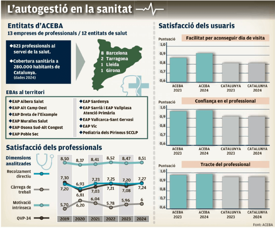 El domingo 25 de enero, el diario El Punt Avui publicó un extenso artículo de Anna Pinter titulado “L’èxit silenciat de la sanitat pública autogestionada”, sobre las entidades de base asociativa (EBA) que gestionan algunos centros de atención primaria dentro del sistema público catalán. Estas EBAs son empresas de economía social formadas por profesionales sanitarios que gestionan el CAP con gran autonomía, pero financiadas y contratadas por la sanidad pública. El modelo se basa en la autogestión: los propios profesionales organizan recursos, equipos y procesos, con incentivos ligados a resultados de salud, listas de espera, uso adecuado de pruebas y grado de satisfacción. Por último y no menos importante, esta forma de trabajar genera una mayor motivación y menor burnout.