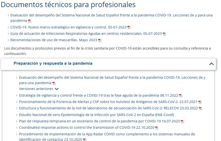 Prácticamente toda la información del Ministerio de Sanidad sobre COVID durante la pandemia se vehiculó en formato PDF