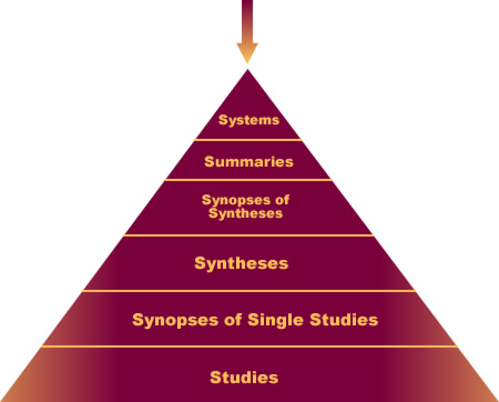 En la famosa pirámide de Haynes el último nivel (o el primero según se mire) está conformado por los denominados Sistemas. Por Sistemas se entienden herramientas de información en las que los datos individuales del paciente se ligan automáticamente a las fuentes de información. Se puede decir que proporcionan al médico los aspectos clave de la gestión informacional del caso clínico que se le plantea. El
