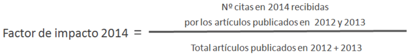 El factor de impacto (FI) es un indicador bibliométrico que pretende medir el impacto o repercusión de las revistas científicas, basándose en el promedio de citas recibidas por estas. En concreto el FI de una revista se obtiene dividiendo el número de citas que reciben en un año los trabajos publicados en esa revista a lo largo de los dos años anteriores por el número total de artículos o ítems citables publicados en esos dos años.