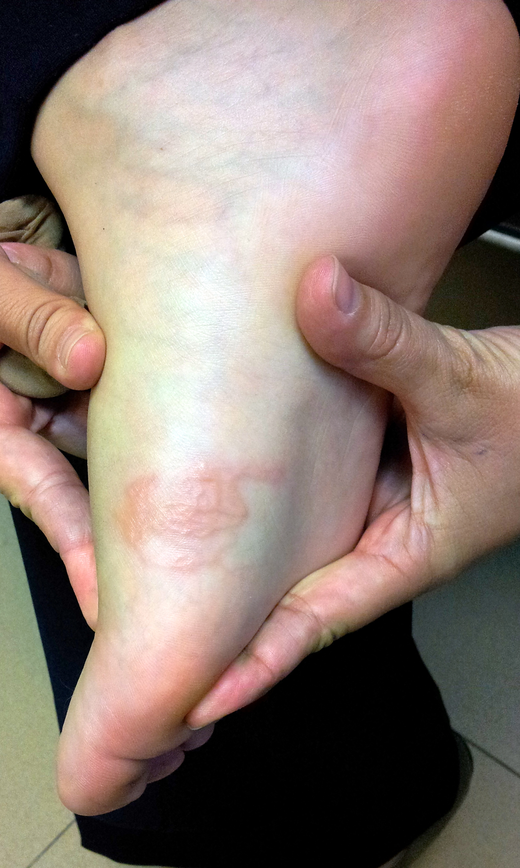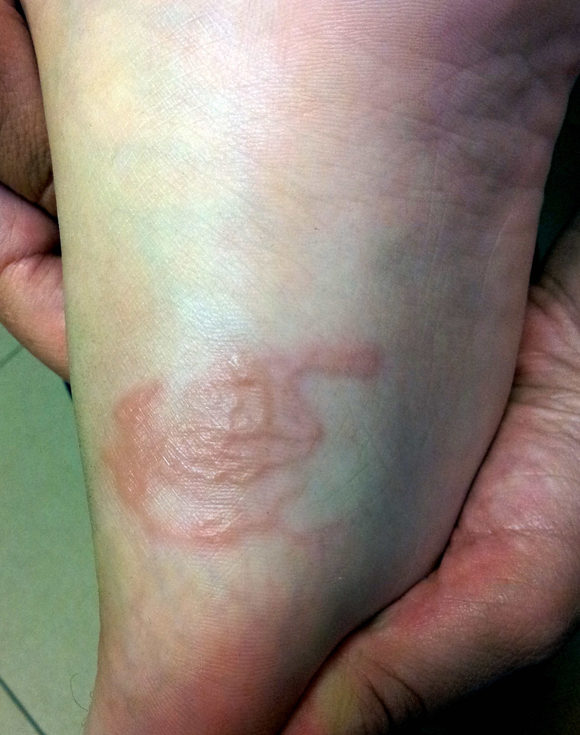 Mati, mujer de 28 años, sin antecedentes de interés, tras regresar de su viaje de luna de miel a una isla africana hace 10 días presenta una lesión muy pruriginosa y con aspecto singular en la planta del pie