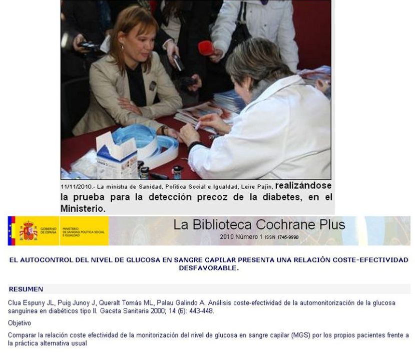 El cúmulo de despropósitos comienza en el mismo periódico, bastaba que hubieran buceado en sus archivos y leer lo que en sus mismas páginas se ha publicado sobre la inutilidad de estos controles en diabéticos no insulin-dependientes*. Pero siguiendo el hilo y los comentarios del post original se topa uno con lo mejor, una representante de pacientes tan airada como ignorante, una política, médica por más señas, igualmente desinformada, y un pobre médico que intenta poner racionalidad en la discusión y sale trasquilado e injustamente insultado.