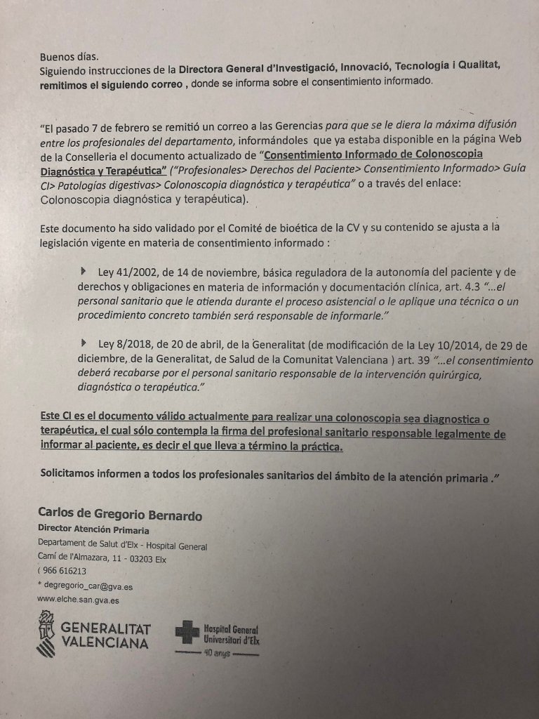 Esta es la carta, en el caso de la Comunidad de Madrid, del programa PREVECOLON, un ejemplo de indignidad y de violenta persuasión, sin ningún atisbo de datos, ni de transparencia, ni de resultados basados en la ciencia para poder tomar una decisión informada.
