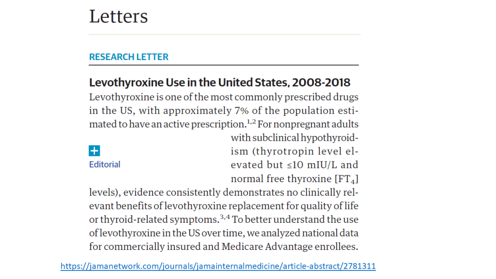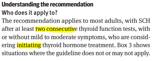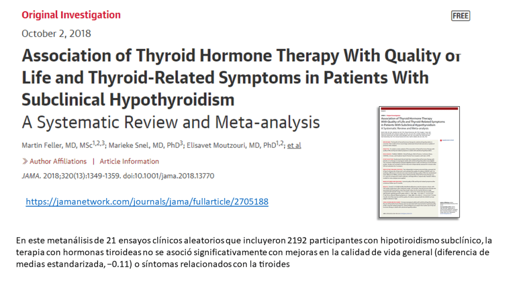 Esta recomendación podría no aplicarse a: Pacientes que ya toman hormonas tiroideas. Las pruebas presentadas aquí observaron el efecto de comenzar la medicación e informaron solo de manera indirecta de detenerla.