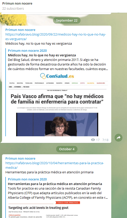Mantente actualizado de lo que se publica en Primun non nocere con el canal de Telegram