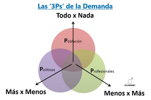 Y, tampoco, en esta intensidad de anhelos, por humano que sea, es inteligente pretender, por lo peligroso e incontrolable de las consecuencias, jugar a interesadas alianzas, con el paciente, claro, frente al enemigo común, el político, en este caso. Gráfica de las “3Ps”.