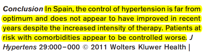 A pesar de que las guías ,muchas de ellas realizadas por estos expertos y auspiciadas por estos laboratorios, recomiendan objetivos en la tensión arterial inferiores a este estándar, se desconoce y no se ha comprobado, si intentar objetivos inferiores reduce la mortalidad y la morbilidad. Se ha intentado especialmente aplicarlos a determinados grupos de pacientes hipertensos como son los diabéticos o los afectos de enfermedad renal crónica, pero una revisión sistemática publicada recientemente concluye que los ensayos disponibles en el momento actual son de baja calidad y no apoya los objetivos de presión arterial inferiores a la norma en las personas con presión arterial elevada y diabetes.