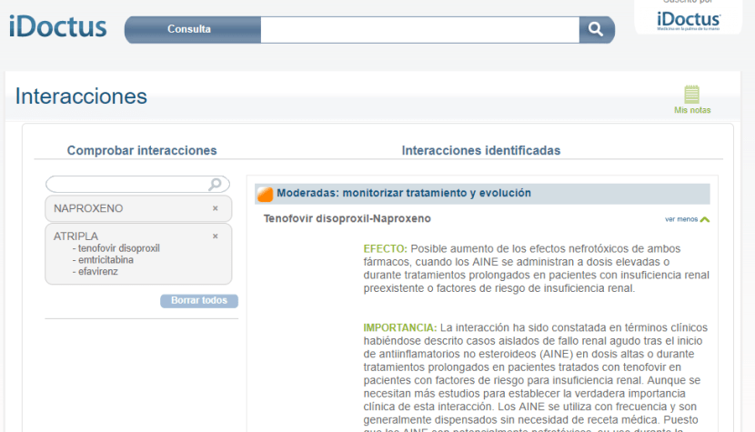 Juan, echa un vistazo a una página web externa de interacciones (el programa de su historia clínica electrónica no las incluye a pesar de reiteradas peticiones) y observa esto