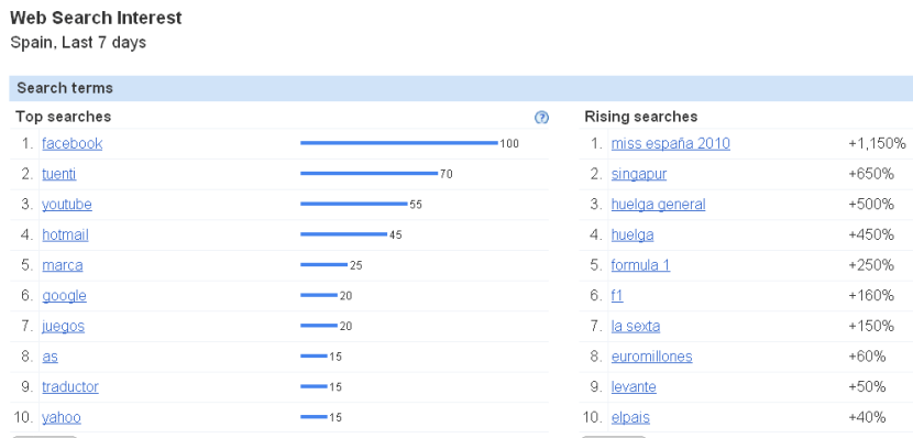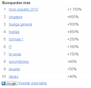 De Google -estadisticas de búsqueda. Semana del 26 de septiembre al 2 de octubre.
