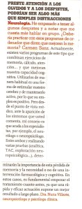 También hace tiempo reseñamos en este blog la explicación certera de un joven médico sevillano. Bajo el titulo de La memoria, Jokin Gonzalez explica con acierto la importancia relativa del deterioro de esa memoria de las pequeñas cosas, que con frecuencia vemos en las consultas.