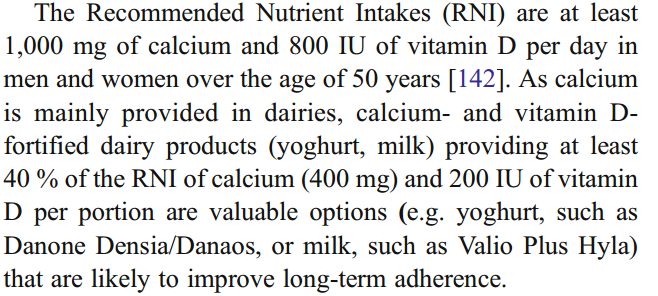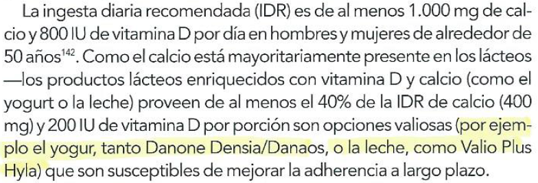 Cuando leí la versión española creí que era un añadido de la compañía (Danone) que facilitaba el folleto publicitario. En esta «literatura» junto a entrevistas con los consabidos expertos de plantilla (internacional, nacional y de atención primaria) aparece reseñada la sección de nutrición de esta guía europea para el diagnóstico y tratamiento de la osteoporosis en mujeres posmenopáusicas: