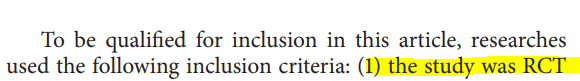 Como se puede ver en el hilo de @Ekkekakis, de los nueve artículos seleccionados, solo dos eran auténticos ensayos clínicos aleatorizados (RCT) a pesar de que en los criterios de selección se señalaba explícitamente que debían de ser RCTs.
