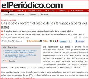 Pero de pronto leemos que el flamante conseller de salut catalan, Boi Ruiz anuncia que en Cataluña se incorporara el coste de los fármacos, y eso como exponente del concepto de «sensibilización ciudadana» y cuya pieza clave es una filosofía centrada en el ahorro y la valoración de lo público… ¡joer que frase!