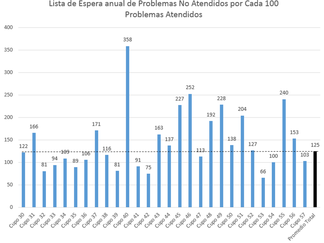 La Lista de Espera real, ‘solo’ es el Nº de Episodios NO ATENDIDOS (de los 12.000 existentes) por cada 100 Episodios Atendidos. En la imagen adjunta vemos las diferencias existentes en único centro, aparentemente homogéneo y con ‘buen clima’ o ‘ buen rollito’.