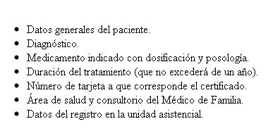 Requisitos exigidos en el Programa Nacional de Medicamentos relacionados con la información que se debe emitir a través de los certificados para la compra de medicamentos:
