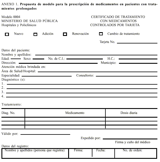 Esta iniciativa de expedir medicamentos mediante el uso de un certificado con validez aprobada hasta un año y renovable cada vez que se requiera, constituyó una idea surgida como recurso para el control de los medicamentos en medio de graves limitaciones económicas, pero una vez puesto en práctica se ha consolidado como un novedoso y útil sistema para la prescripción en aquellos pacientes que mantienen tratamientos estables durante prolongados períodos. Según apreciamos, este sistema facilita la planificación de la producción y la distribución de los medicamentos en función de la demanda real, según las necesidades de cada provincia, municipio o área de salud.