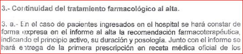 Demanda recetas oficiales para seguir el tratamiento instaurado en el hospital