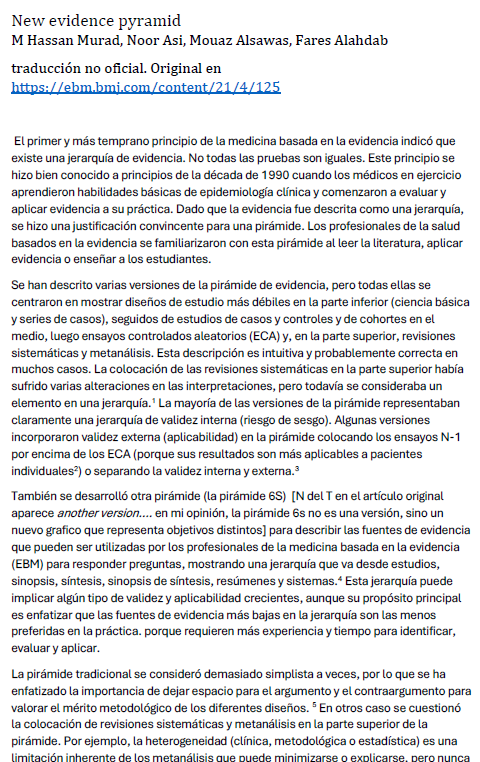 Actualizado en Murad MH. New evidence pyramid. Evid Based Med 2016; 21 (49): 125