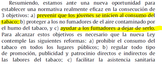 Las leyes antitabaco que restringen o prohíben fumar en lugares públicos persiguen un triple objetivo disminuir el consumo de tabaco, atenuar la exposición al humo del tabaco de los no fumadores y desnaturalizar la costumbre de fumar. Lo mejor es que es una medida de salud pública que tiene éxito, no es costosa, y al mismo tiempo que cura actúa con dimensión preventiva.